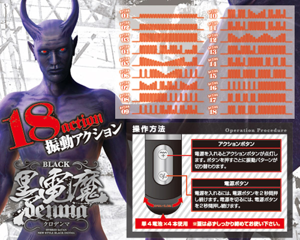圧倒的な責めに陥落!18種類のバイブパターンを搭載した、快感ラッシュの電マです。スタイリッシュなブラックボディのハンディサイズ!生活防水設計だから、水に濡れても平気!ヘッドは柔軟に曲がり、簡単操作で悪魔のごときパワフルな震えが快感ポイントを直撃!貴女を快楽の世界へと引き込こむことでしょう。単4電池×4本使用。