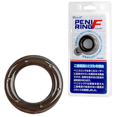 あの頃のたくましさが蘇る!負担のない自然な装着感でありながら、二重構造でキュッと締め付けてくれるコックリング(Lサイズ)。内部にはシリコン製のヒモを通して締め付け感をUPさせつつ、外側が柔らかな素材で負担を軽減。二層構造により伸縮は控えめなので、ジャストサイズか少し小さめがオススメ。強力フィットでパワフルプレイが期待できるコックリングです。