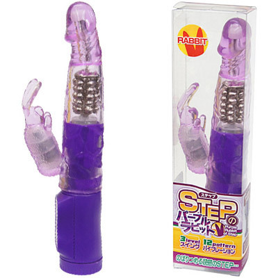 徐々に増していく快感がクセになる…!3段階のスイングと12種類の振動を搭載した、リバース機能付きのパール入りバイブレーター「STEPのパープルラビット」です。本体は初心者の方でも抵抗なく挿入できるスリムボディ!可愛いウサギ型のクリバイブがクリをピンポイントに刺激します。また、わかりやすく表示されたボタンスイッチで簡単操作!誰でもすぐに扱える、ビギナーから上級者まで満足できるバイブレーターです。