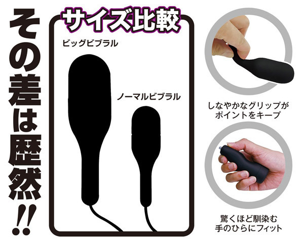 ビブラルシリーズで最もデカイ大きめヘッドがあらゆる箇所をダイレクトに刺激!あまりの気持ち良さに虜になること間違いなしのシングルローター。●ビブラル・ビッグ(黒)ver●「当て」にも「挿入」にも最適なビッグヘッド●肌にやさしいシリコン加工●操作が簡単なボタンスイッチ●下ボタン:電源ON/OFF●上ボタン:振動切替え●超強力な3段階振動●生活防水仕様●単四電池×2本使用。MAX15000回転する電マ並みのハイパワーな振動がアナタを極上の快楽世界へと導く…!ひとりエッチにもパートナーとのイチャイチャプレイにも大活躍する究極のシングルローターです。