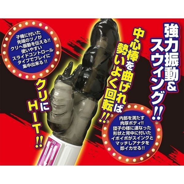 強力振動&スイングの快感ファ○ク!ナカを満たす超肉厚ボディのバイブレーター「ブラックファック」。●逞しいスモークブラックボディ●膣を満たす最大径4.3cmの極太●団子のような凸凹+背面イボ●膣をかき乱す力強い回転刺激●クリバイブ先端に二股のツノ●小刻みに振動してクリにHIT●無段階スライドコントロール●振動&回転は個別に操作可能●安心安全の日本製。潮吹き&即イキ!?パワフル振動&回転刺激の激快感をもたらす超肉厚バイブです。