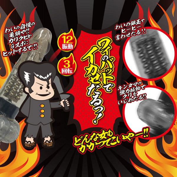 潮吹き上等!ヒィヒィいわせるパール内蔵スイングバイブ「イカす!番長バイブ スモーク」。●ツルンと細身のクリアスモークボディ●自慢のカリクビ亀頭でGスポ責め●ぴっしり銀玉パールで回転責め●強力振動の玉袋型クリバイブ●12振動&3段階の回転スピード●スイングはリバース機能搭載●振動とスイングは個別に操作可能●単四電池×3本付属(動作確認用)。ワイのバットでイカせたるっ!パール&回転機能を搭載した二点責めバイブレーター。亀頭のカリはしっかりと張っていますが、挿入しやすい細身フォルムで初心者の方でも安心です。