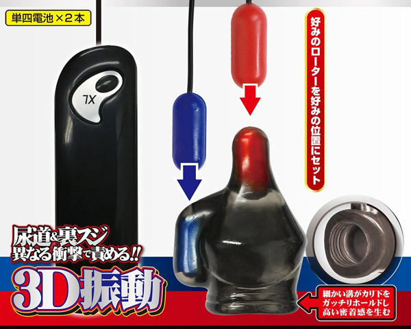 かつてない衝撃!強さの異なるダブルローターを搭載した亀頭オナグッズ「ブラックロック Wインパクト」。異なる振動を尿道と裏スジの2ヶ所同時に当てる事で、亀頭への刺激に立体感が加わり深みのある快感に!ローターの振動パターンは連動して変化する7段階振動を搭載。亀頭キャップ自体もローターを裏スジと尿道へ挟むように配置できるWクラッチボディへと進化!裏スジへは覆うように、尿道へは突き刺すように直接振動を与えます。ハンズフリーで楽しめる大人気『ブラックロック』シリーズの亀頭責めグッズ!各ローターの装着位置を変えることで違った刺激を楽しめます。