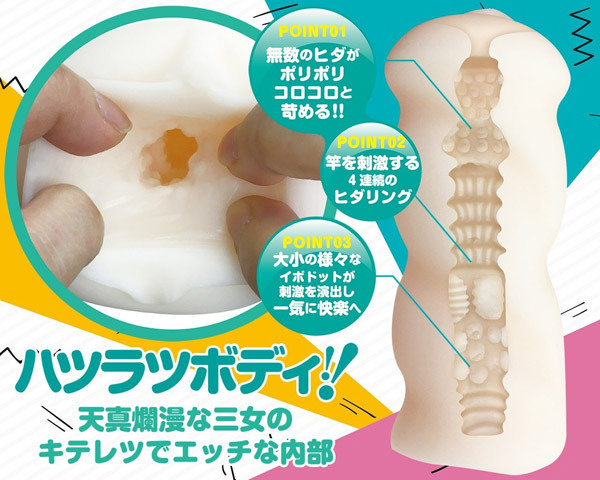 スケベ四姉妹と中出しSEX!天真爛漫な三女ランのハツラツボディオナホール「おなシスタ03 蘭(RAN)」。『おなガール』の血を受け継いだ新シリーズ『おなシスタ』が登場!キテレツでエッチな内部にはポリポリコロコロと苛める無数のツブを配置!中間部の4連続ヒダリングを抜けると、大小の様々なイボドット&横ヒダが刺激を演出し一気に快楽へと誘います。