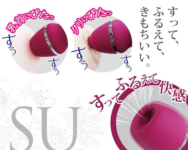 すって、ふるえて、おるがずむ♪乳首もクリも逃さずフィットする、2タイプのアタッチメントが付属した吸引ローター「すぅ」。乳首にぴたっ!クリにぴたっ!吸い逃さない設計でしっかり捉えるなめらかシリコン素材のアタッチメントが付属。多彩なバリエーションを楽しめる7段階吸引×7段階振動を搭載!USBでの充電約2〜3時間で約2時間使用可能(使用状況、環境により時間が変化する場合がございます)。
