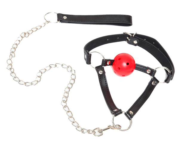 > 調教 リード付き口枷 (ボールギャグ)