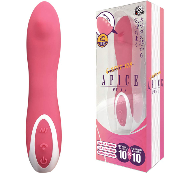 オナニー好きの女の子と一緒に作った新感覚バイブ『アピチェ』。先端に搭載されたクリックボールがあなたを深い快感へ導く。カラダの芯から気持ちよくなろう。先端のクリックボールが深い快感へ導くバイブ『アピチェ』指で性感ポイントをクリクリいじめる動きが楽しめる。10種の多彩な振動パターンが、クリックボールと調和する。中心部を曲げれば好きな角度で刺激可能。触り心地と挿入感がとってもなめらかで内部に負担がかからない。生活防水、シリコン製。2時間の充電で約2時間の連続使用可能※使用状況や環境により時間が変わる場合があります。