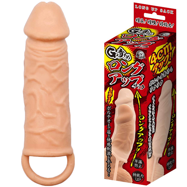 増長!増強!持続力!装着するだけでサオが4cmアップするのでポルチオ責めもラクラク!!生々しいリアルな造形でムードを壊すことなく装着可能。伸縮性のあるエラストマーだから誰でも簡単に使える。また、睾丸をリングで締め付ければ早漏防止にも効果的。反り勃つ力を手に入れG&ポルチオ開発!!