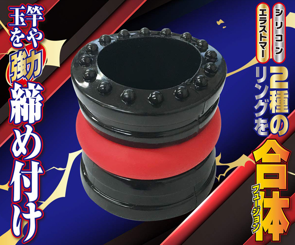 シリコン×エラストマーが合体(フュージョン)!締め付け感が超アップ!2種類のリングをシーンに合わせて自由に付け替え!それぞれ単体でも効果抜群!合体させれば潜在能力をフルで発揮!玉や竿を強力に締め付け、勃起力・射精力・持久力をUP!!攻守ともにスキのないパワー漲るZ級のアイテムをお届けします。