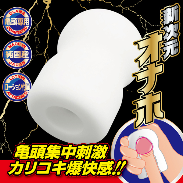 普通のオナニーに飽きてしまったあなたに贈る、亀頭専用次世代オナホ。亀頭への刺激を重点的に考え開発されたカリベーション!オナニーに集中がしやすいホワイトカラーのボディと、一切の無駄を省いたシンプルな造形が特徴。挿入し、擦ったり引っ張ったり摘まんだり、あなた好みに刺激すればカリコキ爆快感が得られます!挿入口はスリ鉢状になっているので、全体にローションを塗り広げられるからとっても便利。本体はソフト素材なので伸縮自在。亀頭を集中的に刺激し、感じた事のない快感をつかめ!