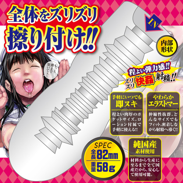 性欲女子とサクッとひとヌキ!エーワン×尾髭丹が送る最強ミニオナホシリーズ!肉ヒダ突起の連続で射精感をグングン高めてくれるミニサイズの非貫通オナホール!全体をズリズリ擦り付け、鋭利な凹凸が射精へ導く!程よい肉厚のポケットサイズの、ローション付属なので手軽に使える!更に材料から生産に至るまですべて国産で安心。4種まとめて味くらべしちゃおう♪