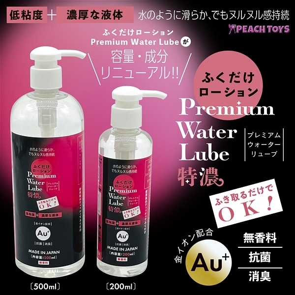 『水のように滑らか、でもヌルヌル感持続!ふき取るだけでOK!』「ふくだけローションPremium Water Lube (180ml)」が、ラベルデザインと容量・成分をリニューアルして再登場です!白いポンプの「ふくだけPWL 特濃」は、【低粘度+濃厚な液体】入口の大きなオナホールでも垂れにくい。高刺激なオナホールにも対応。冬虫夏草エキス・カキタンニン・グレープフルーツ果実エキス・キイチゴ果実エキス配合●ウォーターベースでサラサラの超低粘度ローション●オナホ内部の細かく繊細な凹凸がわかりやすい●使用後はティッシュでふくだけ簡単●無香料●安心の日本製●200ml 特濃 <成分>水、プロパンジオール、ヒドロキシエチルセルロース、乳酸、キサンタンガム、ローヤルゼリーエキス、アルギニン、マカエキス、水溶性コラーゲン、グリチルリチン酸2K、ローズマリーエキス、モモ葉エキス、カキタンニン、銀、フユムシナツクサタケエキス、クエン酸、クエン酸Na、BG、エタノール、セルロースガム、炭酸水素Na、フェノキシエタノール、EDTA-2Na、ブチルカルバミン酸ヨウ化プロピニル