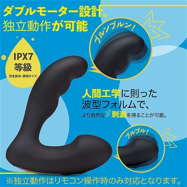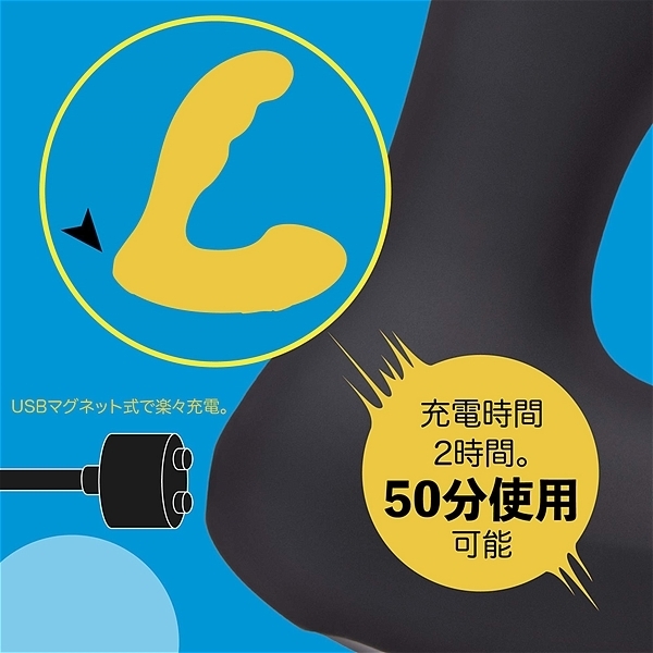 プロバー(PROBER)マッサージャーの人間工学に則った波型フォルムのデザインでより自然な刺激に酔い痴れましょう。本体は安全かつ気持ち良さを追求した良質なシリコーン100%。挿入部と会陰部がそれぞれ独立したモーター搭載で3つの振動レベル(弱・中・強)+4種類の振動パターンが組み込まれています。本体のみでももちろん使用は可能ですが、付属のリモコンを使用すれば、2つのポイントを個別に動作させることができるため、自由気ままに組み合わせて自分専属の気持ち良さをチューニング♪ピタッと簡単なマグネット式充電ポートでIPX7等級完全防水となっているため、どんな水性ローションでも安全に使用可能、使用後は石鹸と水で簡単に丸洗いできるので、快感を得ることだけに専念しましょう♪●充電2時間で約50分使用可能