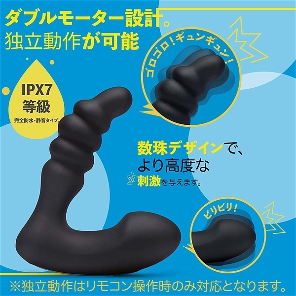 プロッダー(PRODDER)マッサージャーは、より高度な刺激を楽しめる数珠デザインで貴方を陶酔の頂へと誘う!本体は一度触れたらずっと撫でていたい気持ちになる良質なシリコーン100%で出来ており、挿入部と会陰部がそれぞれ独立したモーター搭載で3つの振動レベル(弱・中・強)+4種類の振動パターンが組み込まれています。本体のみでももちろん使用は可能ですが、付属のリモコンを使用すれば、2つのポイントを個別に動作させることができるため、自由気ままに組み合わせて自分専属の気持ち良さをチューニング♪ピタッと簡単なマグネット式充電ポートでIPX7等級完全防水となっているため、どんな水性ローションでも安全に使用可能、使用後は石鹸と水で簡単に丸洗いできるので、オルガズムの探求に専念しましょう♪●充電2時間で約50分使用可能