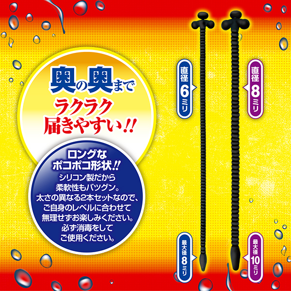 仕様:本体:細(挿入部25.0cm・直径0.6cm・最大径0.8cm)、太(挿入部25.0cm・直径0.8cm・最大径1.0cm)