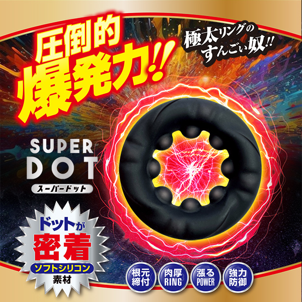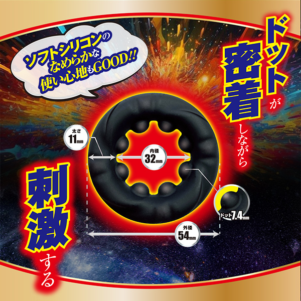 リングを装着しエネルギーチャージ。圧倒的爆発力で、ありったけを放出!攻守ともに優れたソフトシリコンリング。タマやサオ、その両方をガッチリホールドし、最後の一撃に込めるべし!<商品特徴>ドット部分が密着しながら気持ちイイポイントを刺激する!