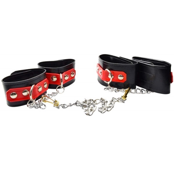 仕様:パッケージ:22.0×7.0×6.0cm 本体:手枷(ベルト27.0×5.0cm・チェーン17.0cm)・足枷(ベルト29.5×6.0cm・チェーン20.0cm)・ジョイントチェーン48.0cm