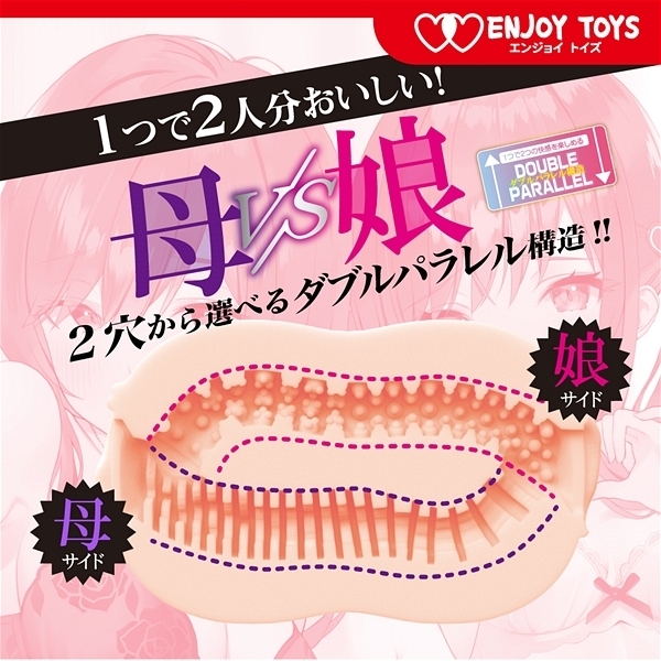 他にはない特殊な内部構造の貫通型オナホ「ダブルスほしがり母といいなり娘」。1つで2つの快感を楽しめるダブルパラレル構造が特徴で、快感を生み出す新素材ムースキンを採用したことで高い伸縮性と竿へフィット感を実現しました♪前後に挿入口があり、母ルートか娘ルートかを選べて弾性のある触り心地と包み込むような挿入感が病みつき必至!凹凸の少ないなめらかな触感と低摩擦の肌に優しい使用感♪横にも縦にも伸縮する、貴方のカタチにフィットする使用感をぜひ味わって下さい!ベタつきが少なく内部で穴がループしているので開放的な射精感がお楽しみ頂けます♪