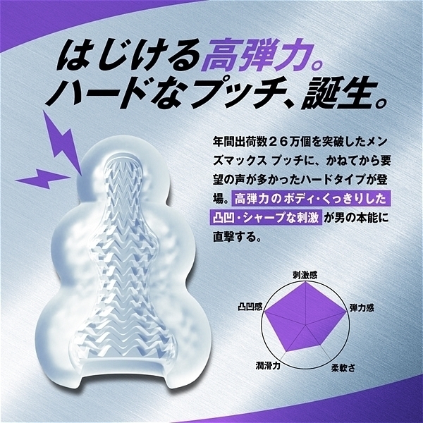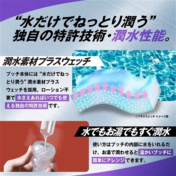 プラスウェッチは独自開発の新素材。水をつけて軽く擦ることで内部の超ミクロサイズで閉じ込められた「潤いゼリー」が水に反応し、沁みだし樹脂表面をねっとりと潤い包みこみます。<デコボコ感さらにクッキリ。>「HD(High Definition)成形」で突起のデコボコ感がさらにクッキリになりました。突起に触れたときの粒立ちが違います。<キャンディー内部構造>「密集した四角錐の高刺激」整然と敷き詰められた四角錘の突起<クリーム内部構造>「吸い込まれるトルネード構造」斜めに擦り上げてくるヒダはクリームのように昇りつめる絶頂感<ベリー内部構造>「全体を覆う繊細で優しい突起」フワフワとした起毛が包み込みまったりしたなめらかな触感<カカオ内部構造>「反り返りのあるヒダの多層構造」ビッシリ並んだヒダは反発しながら複雑に絡みつく刺激