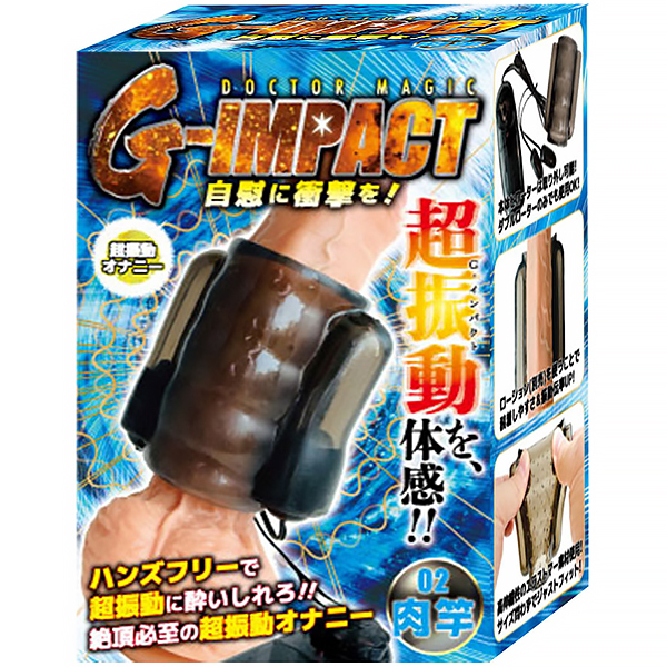 Wローターの強力振動で敏感な部分を強烈刺激!竿部分に特化した超振動をハンズフリーで体感!普通のオナニーに飽きた方へ贈る超振動オナニー!肉竿タイプは竿部分を締め付けながら強力刺激。アタッチメントは伸縮性の高いエラストマー素材 を使用しているのでどんなサイズの人にもジャストフィット。ハンズフリーで使用できるので、両手 は自由に使えます。また付属のWローターは強弱を無段階で調節できるのでお好みの刺激で楽しめ ます。G−IMPACTシリーズの亀頭・玉袋と組み合わせた複数ポイント刺激もおすすめです。