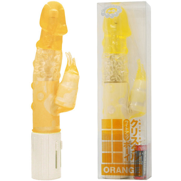 人間工学に基づいた昇天必須の快感バイブ「クリスタルボーイパール入り オレンジ」。本体内部に贅沢なパールを内蔵し、使用時にはその部分が怪しくライトアップ!カリの直径約3.8cmと巨根マニアの方も納得!子機も3枚舌仕様と抜かりなし!さらにスイングとバイブの個別動作が可能…と、見た目と性能どちらも兼ね備えた次世代バイブ!