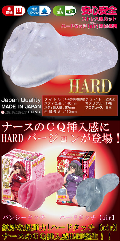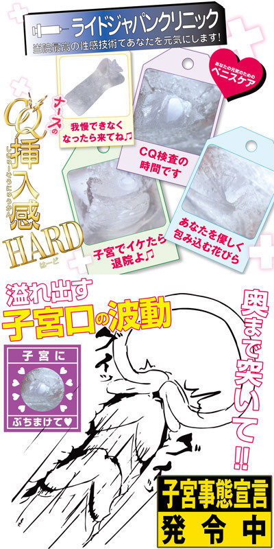 淫乱ナースのハードなペニスケアを体感!RIDE JAPANの人気ホール「ナースのCQ挿入感」に、超弾力のハードバージョンが登場しました。子宮への挿入感を味わえるオリジナルの内部構造はそのままに、モチモチのバンジータッチ素材から、やや硬めのクリアなハードタッチ素材になりました。プリプリ感がさらに増した硬弾力ながっつり高刺激オナホールです。
