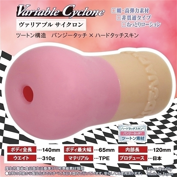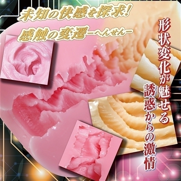 ヴァリアブルアタック:革新の触感テクノロジー、ツートン素材が魅せる感覚のダイナミズム!二つの世界を一つで感じるデュアルフィーリング。柔から硬に変わる瞬間、波形状から渦巻へ変わる瞬間を素材と形状のヴァリアブルを感じて下さい。形状変化が魅せる誘惑からの激情、硬度変化がおりなす心躍るアメージング体感。未知の快感を探求!感触の変遷(へんせん)を是非お試し下さい。