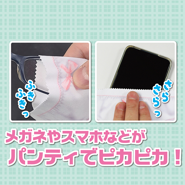 これを使って拭き拭きしよう♪あれ?よく見るとパンティじゃん♪というジョーク系グッズのパンティクロス!丁度良いサイズで眼鏡でもスマホでも何でも簡単に拭き拭き出来ます♪使い込んでいくことで汚れたりシミが出来たりと味わい深いオリジナルなパンティクロスになっていきます。