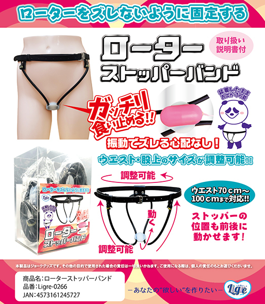 ローターをしっかり固定する「ローターストッパーバンド」の登場です!ローターを固定したい!ずっと股間に当てておきたい!しかしズレるし動く…そんな時には、このローターストッパーバンドです!履くタイプのベルトが付いており、そこにゴムで簡単に装着可能!ローターを固定する台座が付いているので、そこにローターを固定すれば絶対に外れない!これはあらゆるプレイに使えそうだ!ローターパンツなどもありますが、結局はローターの振動でしっかり固定する事は不可能です。しかしこのバンドならがっちり固定できますよ!追加台座を使用したら、ローターもアナルプラグも両方で固定する事も可能!プレイの幅が無限に広がる、ローターストッパーバンド!是非お試しください!