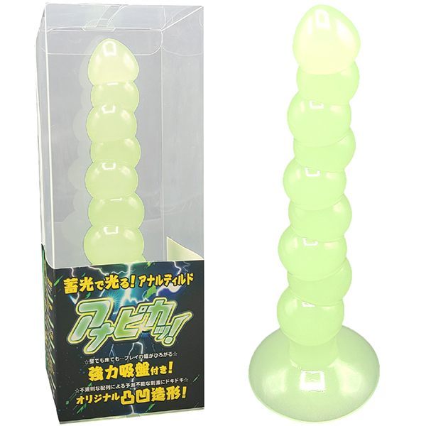 蓄光で光るアナルディルド「アナピカッ!」の登場です!アナルをグイグイとかき分けるような凸凹形状!素材はTPEなので人体にも安心安全です!暗闇でピカッと光るアナルディルド!とっても幻想的で美しい!挿入するところも素敵に丸見え!先端は挿入しやすい作りで、奥に行くほど球が大きくなる!この凸凹形状が最高に気持ち良いのです!さらに200mmのロング形状なので、挿入感も大満足の一品!アナピカッでアナルプレイを楽しもう!