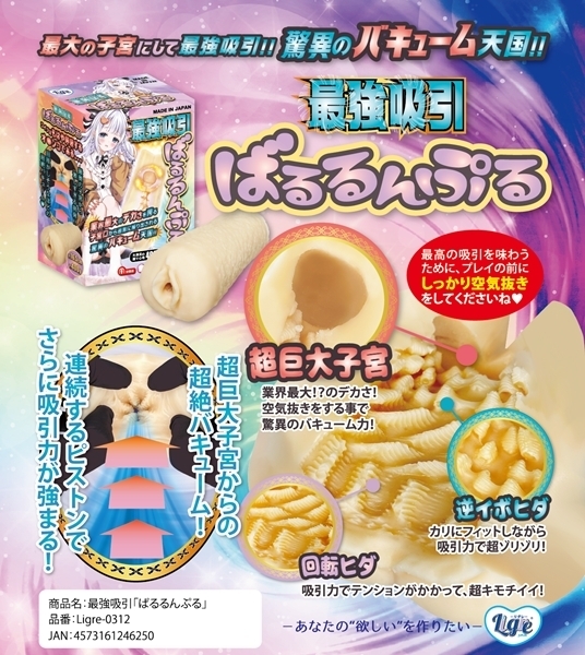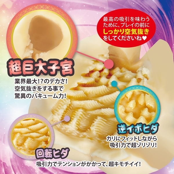 驚異の吸引力を実現した非貫通オナホです♪本体の最奥部には業界最大級のバキュームゾーンを搭載!しっかり空気抜きを行うことで、圧倒的な吸引感を体感できます♪中間部から手前に向かう回転ヒダ構造により、全体がしっかりと包み込まれ、心地よい刺激が生まれます。内部には縦ヒダやイボが細かく配置され、奥までしっかりと伝わる感触を実現!全長16cm、最大径6.5cmのボリュームで、快適な使用感が得られます♪ボディはストレート形状で持ちやすく、滑り止めのテクスチャーも施されています!