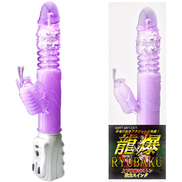 くねりながら伸縮!多彩な機能を搭載したパール入りピストンバイブ「龍爆」。奥の奥まで責めたてる、挿入部約16cmのロングなボディには、6段階のスイング調節と7種のクリバイブパターンを搭載!スイングしながら伸縮しつつ、内蔵パールも回転します。まるで昇竜が如く暴れ回る多彩なアクションを持つバイブレーターです。単3電池×4本付属。
