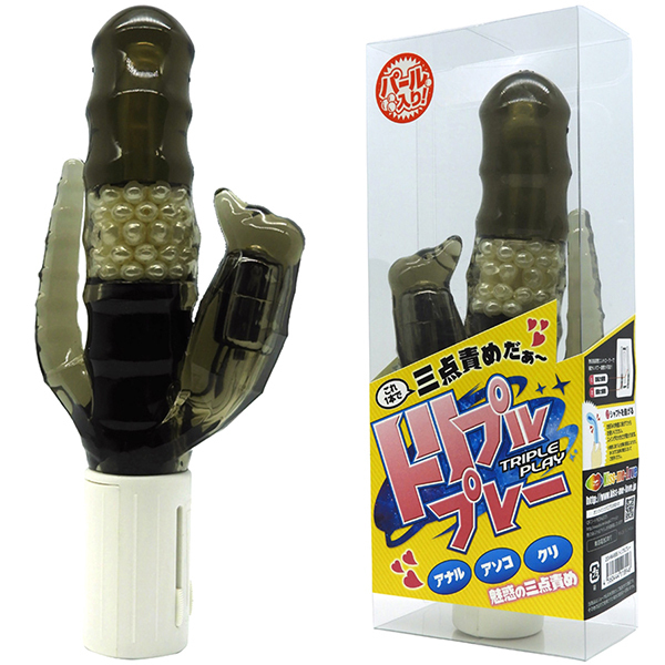 普段お使いのバイブではアソコとクリしか刺激できないでしょう?ですがこちらの「トリプルプレー」ならそんなお悩みもラクラク解消!「アナル」「アソコ」「クリ」がこれ1本で楽しめる魅惑の三点責めバイブ♪ボディは豪快なスイングと内蔵パールの回転でゴリゴリとした快感を生みだし、小バイブがクリに超振動を与えつつ小ぶりなしっぽがアナルを絶妙に刺激してくれます。むにゅっとしたヘッドが回転しながらパールで穴口付近を刺激、さらにクリトリスへのダイレクトなビンビン振動とアナルにも振動を与える3点責めが絶妙に気持ちいいです!スイング&振動をそれぞれ独立操作し、無段階調整コントローラーで細かいパワー調整が可能となっています。アナルにもちょっと刺激が欲しいときにもぜひどうぞ♪