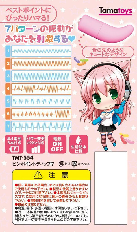 舌先のツンツン責めをローターでも!ピンポイントでしっかり責める、キュートなデザインのコンパクトローター。●本体はなめらかな肌触りの高級マット加工●先端がクイっと曲がった舌先フォルムの振動部●ボタンを押す度に変化する7パターンの振動機能を搭載●お手入れし易い生活防水仕様。小回りのきくコンパクトさと細めの先端フォルムが、乳首やクリトリスなど敏感ポジションをしっかりキャッチしてくれる優秀ローターです。●メーカー型番:TMT-554