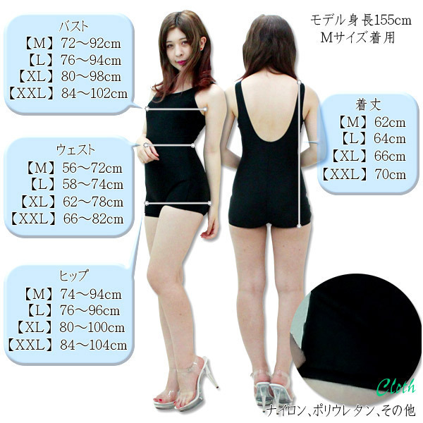 仕様:XLサイズ:B80〜98cm・W62〜78cm・H80〜100cm 着丈66cm セット内容:水着単品(前身頃全面に裏地付き、胸部にパット付き) 素材:ナイロン、ポリウレタン、その他