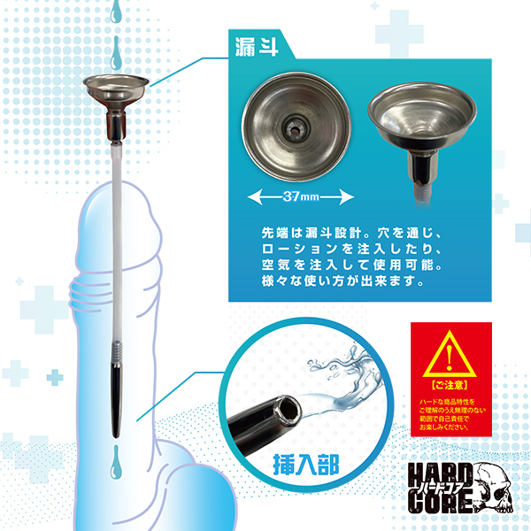 極める者だけが味わえる悶絶快感。荒々しい刺激が楽しめるグッズブランド『ハードコア』シリーズに、漏斗付きプラグがラインナップ!本体フロントに備わった漏斗から、液体や空気を入れLet’s play!!チューブはメディカルグレードシリコン素材で柔らいから、ナカに入れても安心。挿入部はステンレス製で、温冷感プレイも出来る。もちろん丸洗い可能なので衛生的。極めし者のみ許された快感を愉しもう。<ハードコアシリーズとは?>頭が真っ白になるほどの未知なる刺激…コントロール不能な快感….目指すはエキスパート。極める者だけが味わえる、気絶しそうなほどの悶絶快感。エーワンが送る、ハードで本格的な使用感を体感できるグッズブランドです。