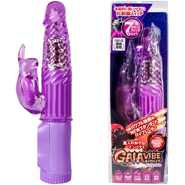 パワフル・丁度良いサイズ感のNEWスタンダードバイブ。使い勝手の良い7パターン振動&スイングをIC制御。挿入し易い先端から波打った刺激が味わえる形状とGス〇ットを責める回転パールギミック搭載。可愛いサブバイブの微細高速振動モーターが外局部をしっかり刺激。肌触りの良い高品質TPE素材に静音設計・生活防水も装備した正に次世代の魔人系バイブ!カラー:パープル