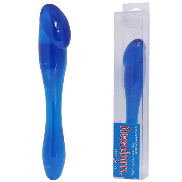 超人気!初心者さんにも安心な、ソフト素材のスティックディルド。クリアブルーの「β(ベータ)」は、両端で形状が異なり、少し太目の流線型ストレート側と、ペニスを挿入する感覚を味わえる側の2種類。アソコはもちろん、アナルにも使える優れものです。つるりと入る柔らか素材なので、初心者の方にも安心してお使い頂けます。機能性と見た目の美しさを兼ね備えた、人気のディルドです。