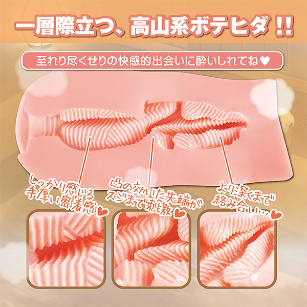 密着感が気持ちいいと大好評のオナホ「温泉欲情」に第2弾!包まれるような肉感とフィット感はそのままに、先端からスジまで、角ばったヒダ群が刺激し絡みつく高山系ポテヒダ構造で仕上げました♪素材には人肌質感のヒトハダマテリアルを採用!嫌なニオイ、ベタつきを抑えた本物志向の質感。使用後は洗浄可、温めての使用もOK!とろけるような気持ちよさを是非どうぞ♪非貫通