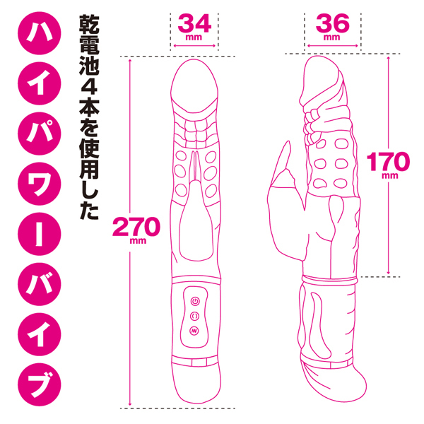 誰でもスグにイカせられるスゴ技テクがコレ一本で手に入る!48種類もの豊富な振動アクションを搭載した膣奥まで届きやすい全長27.0cmのバイブ。多彩な48の組合せパターンとパワーアップした百戦錬磨シリーズ第弾!