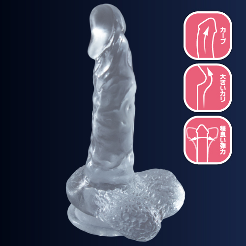 程よいサイズで見た目の印象もインパクトのある「クリアディルド(Mサイズ)」です♪絶妙な反り具合で気持ちいいポイントにちょうど当たる形状で、初心者から中級者に最適!リアルな凹凸に太い裏筋、そして程よい弾力が特徴で、カーブ形状と大きなカリが膣内やアナルを傷つけることもなく的確に刺激してくれます♪挿入初心者の方でも安心して受け入れられるサイズ感!嬉しいクリアカラーと造形でこだわりの仕上がりとなっています♪吸盤付きなので使い心地も抜群です。