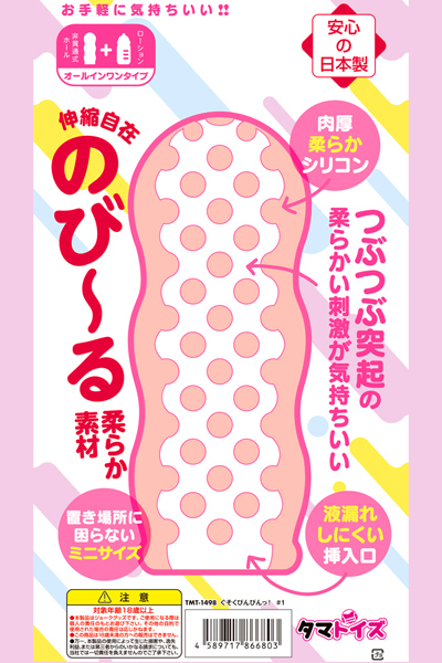 どこでも使える携帯タイプ♪肉厚柔らかシリコン使用!つぶつぶ突起の柔らかい刺激が気持ちい非貫通オナホール!伸縮自在の、のび〜る柔らか素材なのに、液漏れしにくい挿入口!舐めても安心・安全な日本製のローション付きのオールインワンオナホ。●メーカー型番:TMT-1498