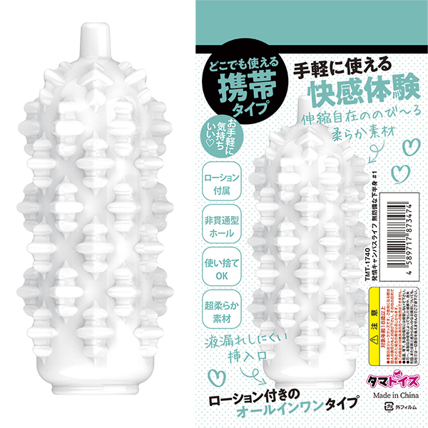 どこでも使える携帯タイプ。ゴロゴロ高刺激タイプ、ローション付きのオールインワンタイプ、肉厚な柔らかシリコン使用で手軽に使える快感体験。伸縮自在ののび〜る柔らか素材、液漏れしにくい挿入口。 セット内容:非貫通式ホール、ローション●メーカー型番:TMT-1740