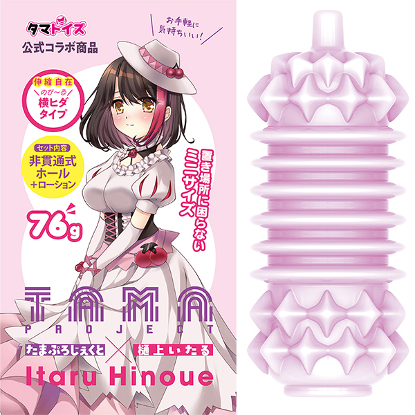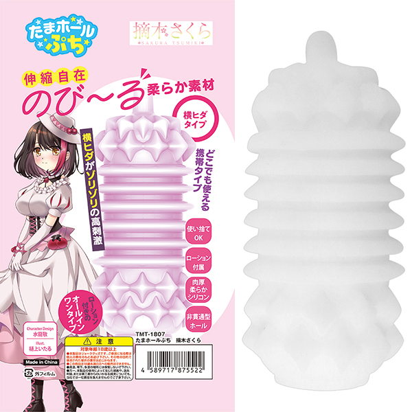 コンパクトで持ち運びやすい非貫通オナホです♪タマトイズ専属Vtuber「摘木さくら」とのコラボ商品で、横ヒダ構造が特徴!伸縮自在な柔らか素材を使用し、快適な使用感を実現しています。使い捨てタイプなので、後片付けも簡単!携帯性に優れ、ローションも付属しているので、開封後すぐに使えます♪本体は76gの軽量設計で、置き場所にも困りません!イラストは樋上いたるが担当し、デザインにもこだわりが詰まっています♪