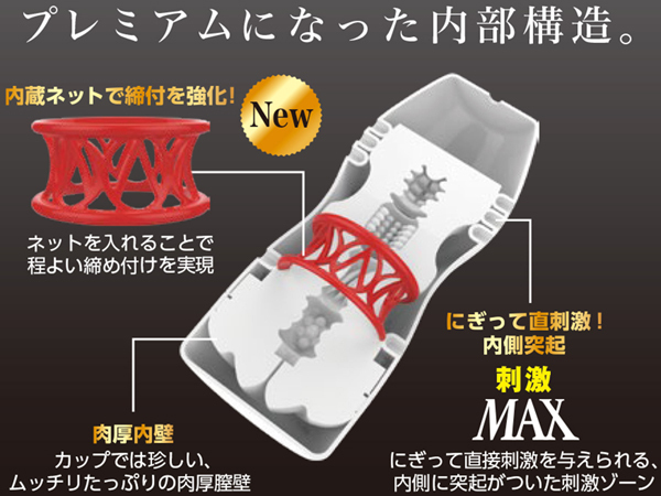 寒い季節にホットな快感!内蔵ネットでキツく締め上げる温感ローション付きオナホ「ユイラシコルプレミアム(バーニング)」。むっちり肉厚な内壁に全体を包み込まれながら、外側から握ってダイレクトに刺激!内側の突起が締め付けと組み合わさり強力な快感をもたらす。ユーザーの声によりフィルムが破れにくくなって新登場した使い捨てオナホ