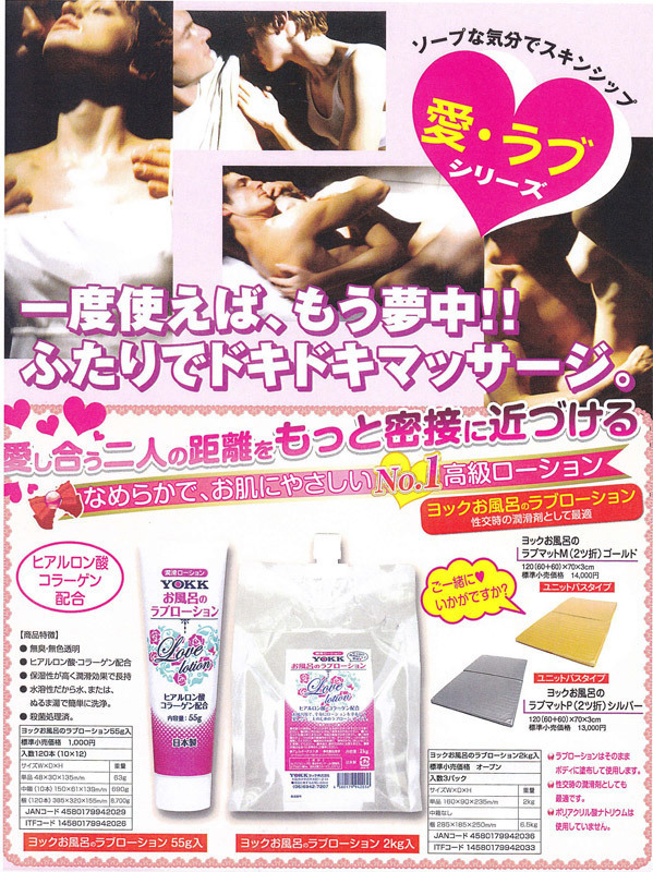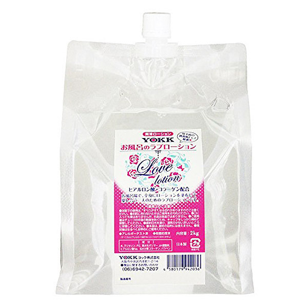業務用マットでもお馴染みのヨック製!お風呂場で濃厚なヌルヌルプレイが楽しめる大容量ラブローション。●詰め替えに便利なキャップ付きパウチ入り●お肌潤うヒアルロン酸&コラーゲン配合●風俗店でも扱いやすい無臭・無色透明●高い保湿性で長時間潤いが長続き●水やぬるま湯で簡単に洗浄出来る水溶性●安心してお使い頂ける殺菌処理済み●アレルギーテスト済(全ての方にアレルギーが起きないという訳ではございません)。滑らかな使用感の潤滑ローション!全身にたっぷり塗布して二人の愛をもっと高めましょう。【成分】※水、グリセリン、PG、親水性ポリマー、pH調整剤、ヒアルロン酸Na、加水分解コラーゲン、パラベン。※浴室での使用は滑りやすくなる恐れがありますのでご注意ください※ご使用後は乾燥を防ぐため、キャップをしっかり締めて保管してください