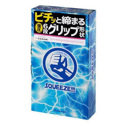 ビチッと締まる強圧!まるでギュッと握られているような締め付け感のサガミブランドコンドーム「SQUEEZE(スクイーズ)」10個入。サガミ社独自の波打つような6段グリップ形状タイプ!絞り部分の直径が27mmと一般的な製品よりも細めなので男性器にしっかり密着&刺激!使用中の脱落も防止しながら、タイトなフィット感と強い締め付け感を楽しめます。なめらかな使用感が得られる潤滑剤付き、ピンクカラーのラテックス製コンドームです。