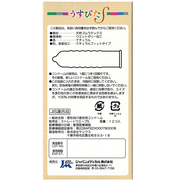タイトなSサイズコンドーム●天然ゴムラテックス製●ウェットゼリー加工●ナチュラルカラー