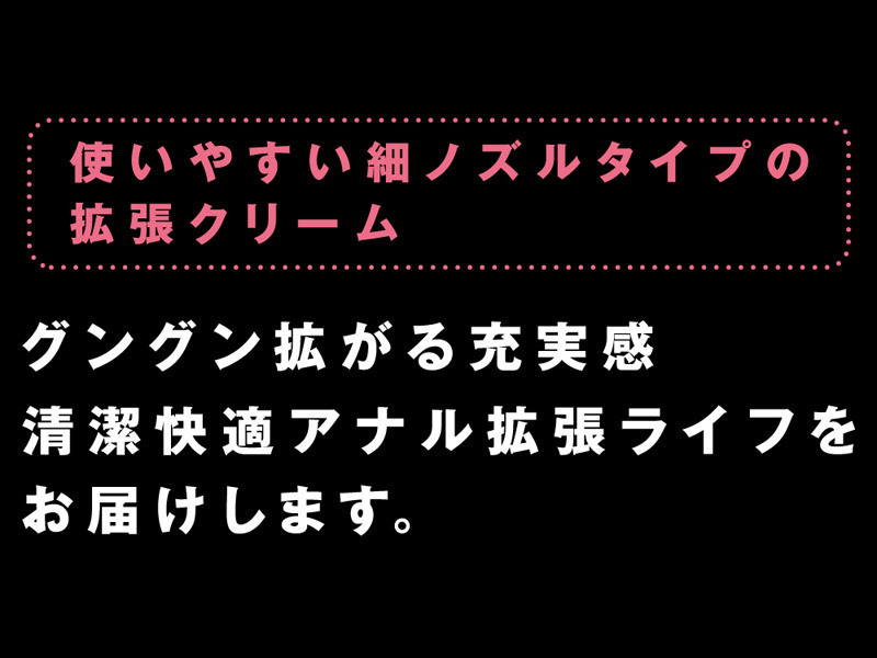 塗るだけでどんどん拡張していく…アナニー好きのためのアナル拡張専用クリーム。●清潔で安心&携帯に便利なアンプル型●一本で一回分(使い切りタイプ)●先端部分を切り離すと極細ノズル●奥の奥にまで適切な量を注入。低刺激クリームなので秘部に負担をかけません。たっぷり使って適度にほぐし、無理のない挿入を!マニアはもちろん、ビギナーさんにもオススメのアナルグッズです。