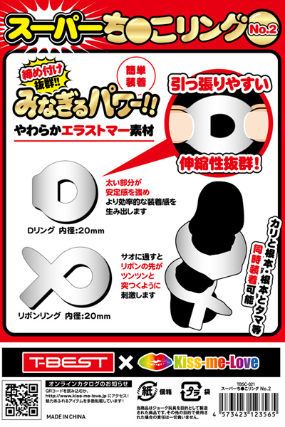 <T-BEST×KISS-ME-LOVE>夜もがんばリングで大人気のやわらかメンズリング「ち●こリング」が、スーパーになって新登場!今度のち●こリングは「特殊形状2個セット」!一部が肉太のDリングにクルッと輪を折ったリボンリングとをセットにしました!Dリングは一部分を肉太状にしたもので太い部分が安定感を強めてより効率的な装着感を生み出します。リボンリングは輪っかの先にリボンの端が出ているので先端がツンツンと突くように刺激します。二点同時装着が可能!高い耐久性のやわらかエラストマー素材に、引っ張りやすい簡単装着デザイン、男らしさを引き立たせるスモークカラー!締め付け抜群、みなぎるパワー!